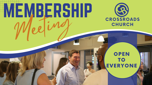 Join Pastor Nigel and the elders right after service for a Membership Meeting. This meeting is open to everyone — members and regular attenders alike. We'll have a candid, honest conversation about where Crossroads is headed. Topics include the details on our leadership search, our vision for building a stronger pastoral team, and what the future looks like for our church.