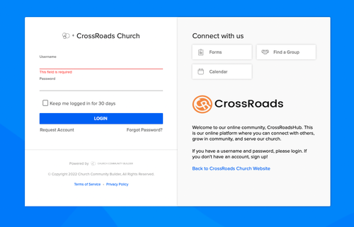 CrossRoads uses Church Community Builder (CCB), an online platform where you can connect with others, grow in community, and serve our church.