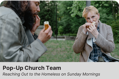 Show people experiencing homelessness by helping with Community Sunday Services, serving food, and distributing clothes and water.