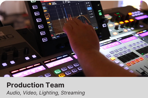 Work behind the scenes to operate cameras, lights, screens, and sound to support the service.